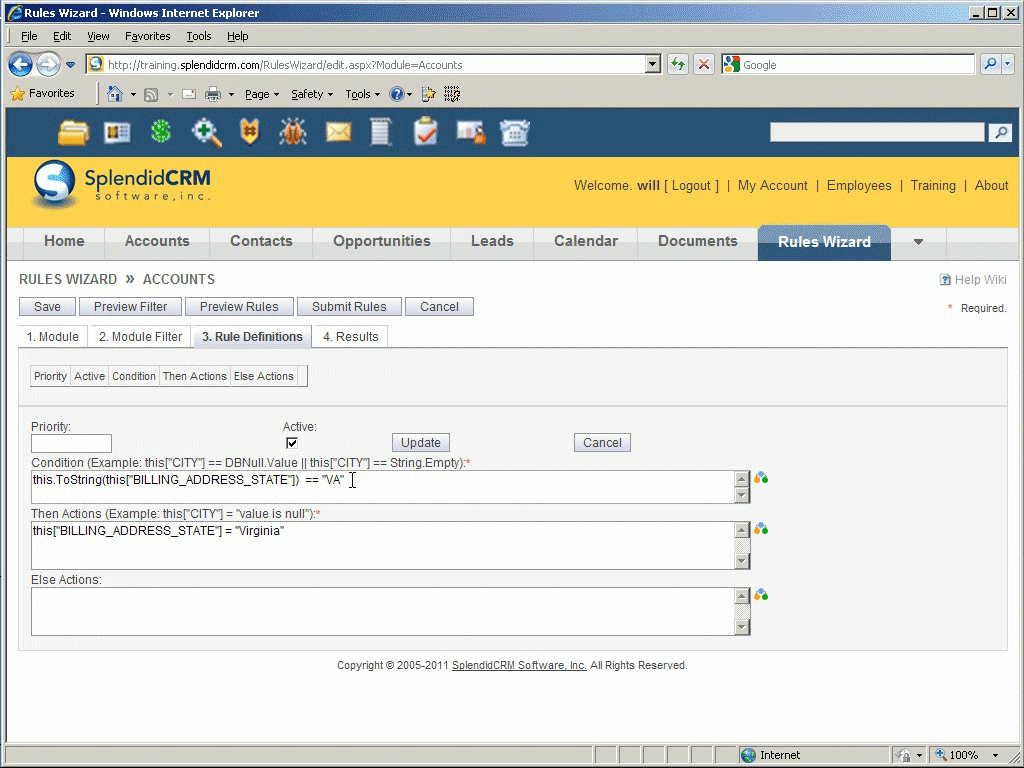 The Rules Wizard allows you to define rules that are applied to a specified module.