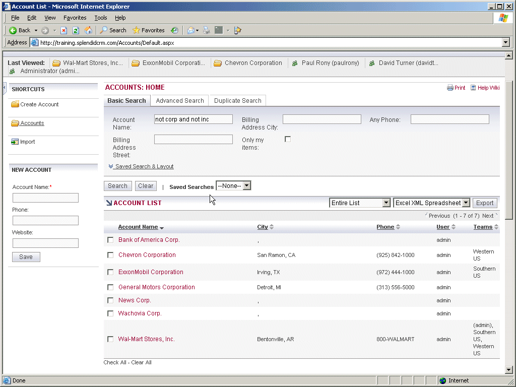 SplendidCRM has a powerful Search Builder that works very much like the popular Internet search engines. The Search Builder allows you to use boolean operators such as AND, OR and NOT.